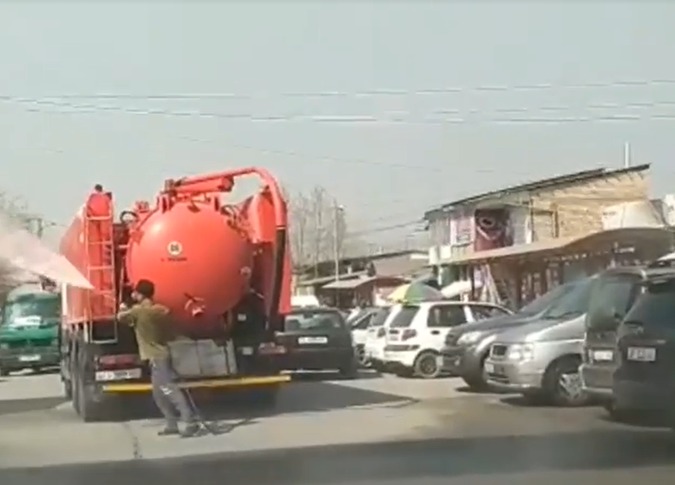 Социалдык тармактарда жол менен унааларды дезинфекция кылып жаткан кишинин видеосу талкууга түштү.