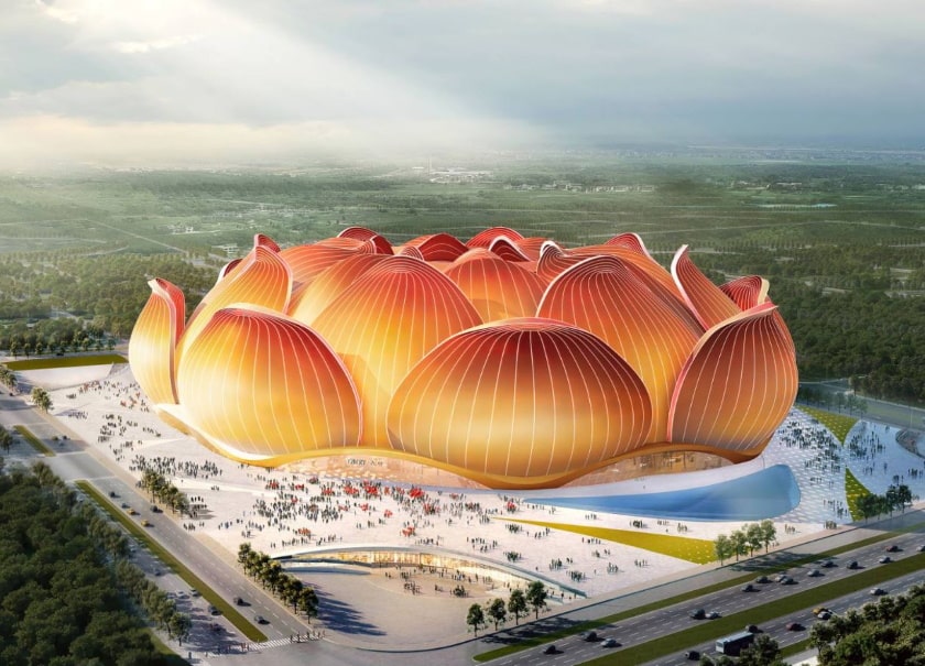 Бул спорт комплексинин курулушуна 12 миллиард юань (1,7 млрд.доллар) бөлүнгөн. Стадион Гуанчжоу шаарынын символдорунун бири болгон лотос гүлү түрүндө курулуп жатат.