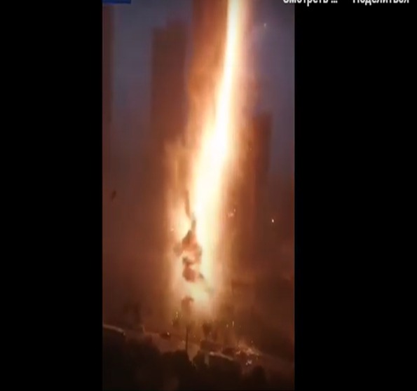 Кытайдын эң ири шаарларынын бири Шэньянда асман тиреген имаратка чагылган түшкөн. Бул тууралуу Top News жазды.