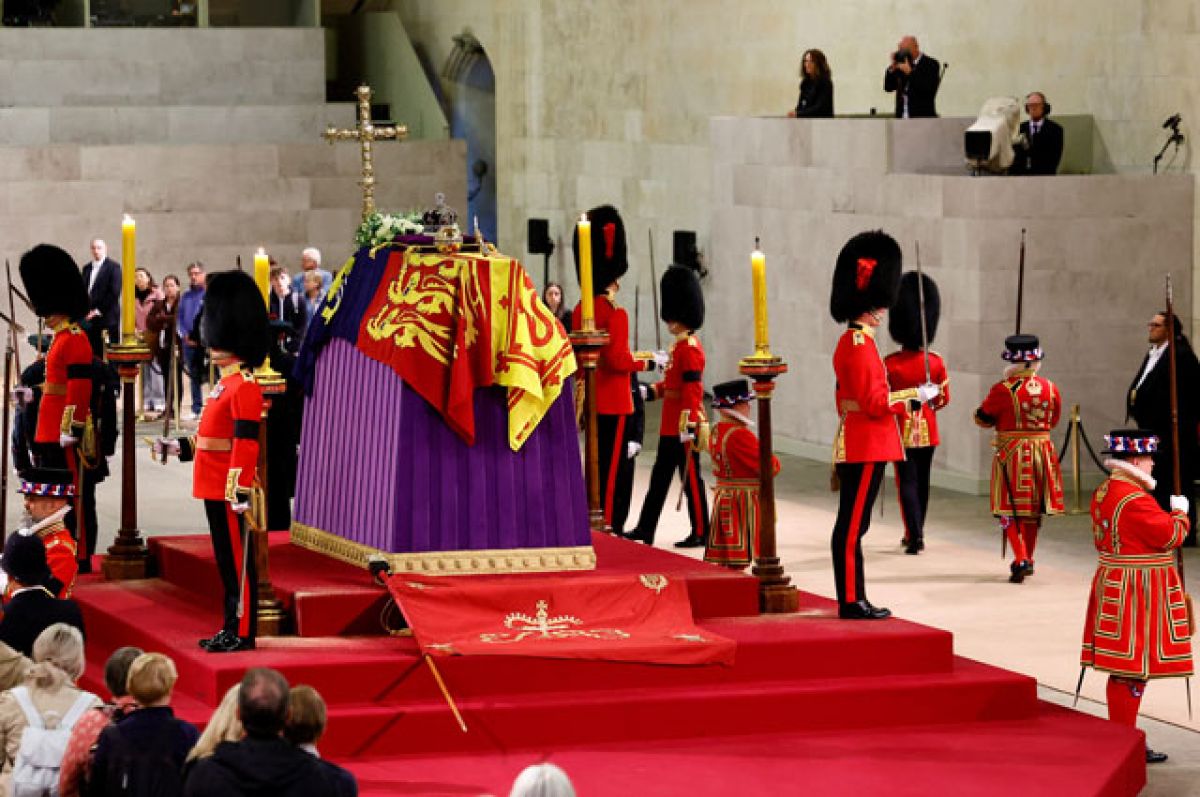 Дүйшөмбү күнү эртең менен каза болгон монарх менен коштошууну каалагандар үчүн Вестминстер сарайына кирүү жабылды. 14-сентябрдан бери миңдеген британиялыктар жана башка штаттардын жарандары Елизавета IIге таазим кылышты. Алар 12 сааттан ашык турууга аргасыз болгон көп километрге созулган кезекке тизилишкен.