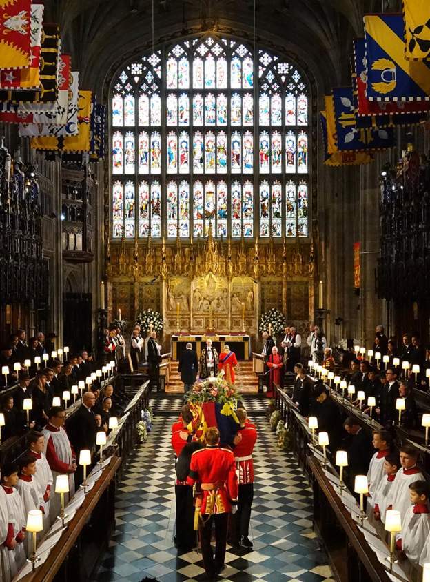 Эскерүү кечеси "Кудай падышаны сактасын" деген ырды ырдоо менен аяктады - азыр Британиянын гимнинин биринчи сабы ушундай жаңырып жатат. Елизавета IIнин сөөгү маркум кйөөсү ханзаада Филипптин жанына коюлат.