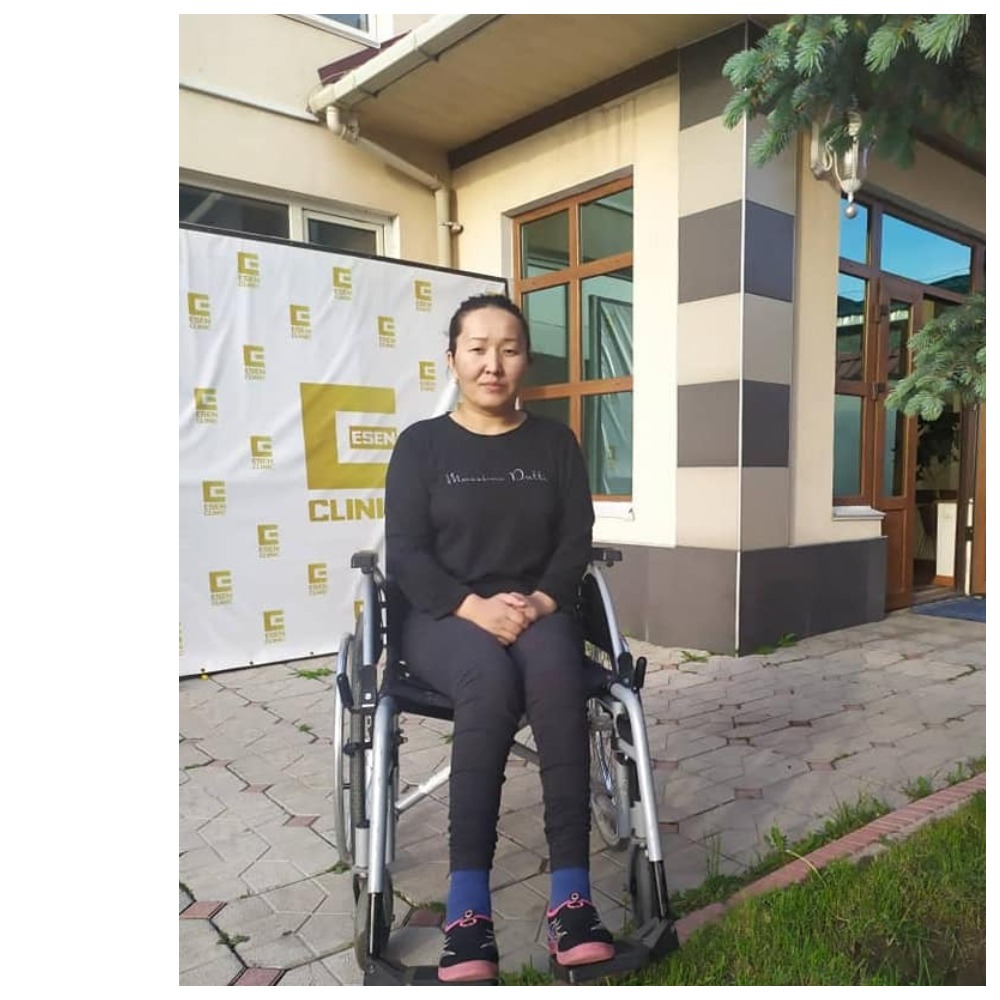 "Мен Исабаева Венера Жалал-Абад областынын Аксы районуна караштуу Кызыл-Жар айылында 1986-жылы туулуп, өскөм. 11 жашымдан бери бутум ооруп кыйналып келе жатам. 3 жылдан бери такыр баспай, майыптар арабасына отуруп калдым. Врачтардын айтуусу боюнча, калыбына келтирүүчү борбордо дарыланышым керек.