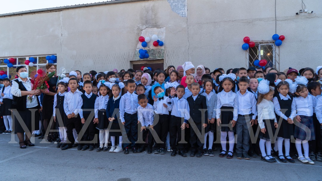 Мектеп босогосун жаңыдан аттаган Каныкей Темирдинова классташтары менен таанышып, жагымдуу белектерди алып кубанып, өзгөчө күн болуп жатканын айтат. Ошону менен катар ал жакшы окуп, келечекте дарыгер болууну кыялданат.