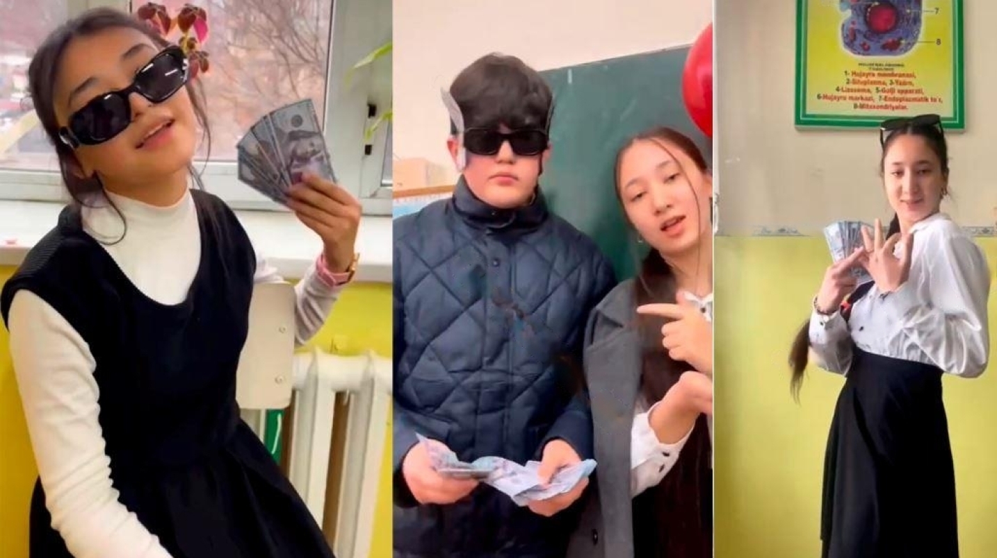 Социалдык тармактарда кыздар сабактан кийин «За деньги да» ырды ырдап, жасалма долларларды чачып жаткан видео тараган.