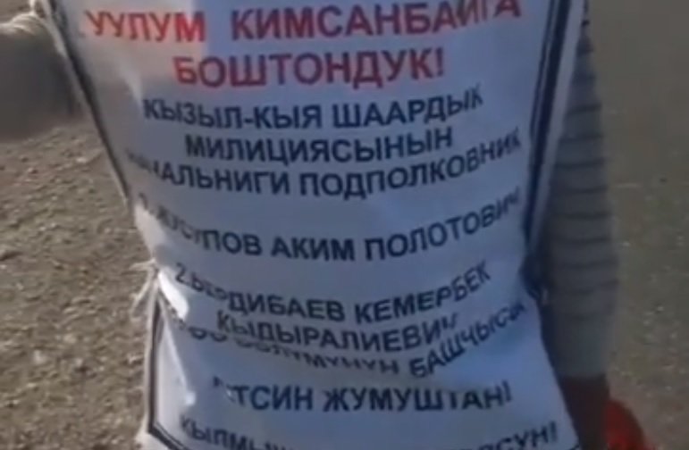Баткендин тургуну Саидраим Абдилатов уулу Кимсанбайга карата козголгон кылмыш ишинин объективдүу тергелишин талап кылып Бишкекке жөө келатат. Алтымыш үч жаштагы Саидраим аксакалдын жолдо келатканына 4 күн болду. Ал Кызыл-Кыя шаарынын милициясынын начальниги Аким Жусуповду жана тергөө бөлүмүнүн башчысы Кемербек Бердиевди жумуштан бошотууну талап кылууда.