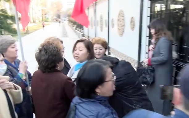 Алар Ак үйдөн чыгып келе жаткан кызматкерлерге кол салып, тээп, урганга да жетишишти. Ак үйдөн чыгып келе жаткан, өзүн Жоргоку Кеңештин аппаратында иштейм деген аялды да тосуп алып, жулкунтуп, Ак үйдүн ичиндегилерди чыгарып бергиле деп талап кылып жатышты.