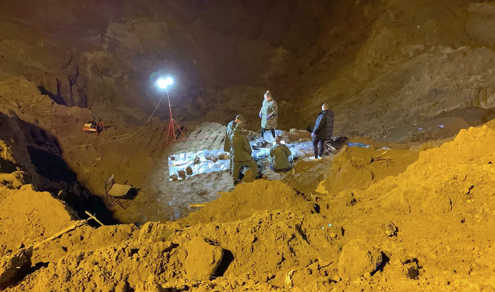 Москва шаарынын четиндеги дөңсөөдө табылган бул сөөктөрдү казуу иши 12 күнгө созулуп, жалпысынан 2 миң чарчы келген аянт 10 метр тереңдикке чейин чукулган. Издөө иштери өз натыйжасын берип, жыйынтыгында 4 метр тереңдиктен сөөктөр табылган. Анын экөөсүнүн баш сөөктөрүндө октун калдыктары байкалганы РФ ИИМинин атайын маалыматында айтылат.