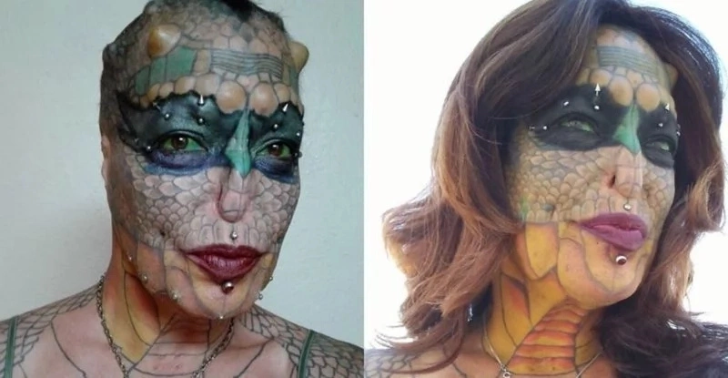Ал өзүнө атайын импланттык операция жасатып, денесине кескелдирикке окшотуп тату салдырган. Мурунун өзгөртүп, тилинин так ортосунан кестирген. Кулагын кестирип алдырып, көзүнүн алдын, жашыл түскө боётуп салган. Ал буга чейин банкта вице-президент кызматын аркалаган. Учурда Ева, өзү каалаган жаныбарды элестетип өмүр сүрүүдө. Еваны ата-энеси 5 жашында таштап кеткен. ВИЧ дартына чалдыккан аял, жөн гана кескелдирикке окшошкусу келет.