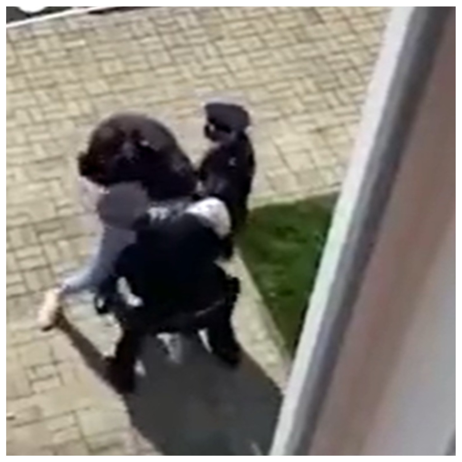Видеотасмада укук коргоо органдарынын кызматкерлери кызды кантип кармап, жерге жаткырып, колдорун байлап жатканы көрсөтүлгөн. Күбөлөрдүн айтымында, кармалган адам мас абалда болгон, активдүү каршылык көрсөтүп, полицияны уят сөздөр менен урушкан.
