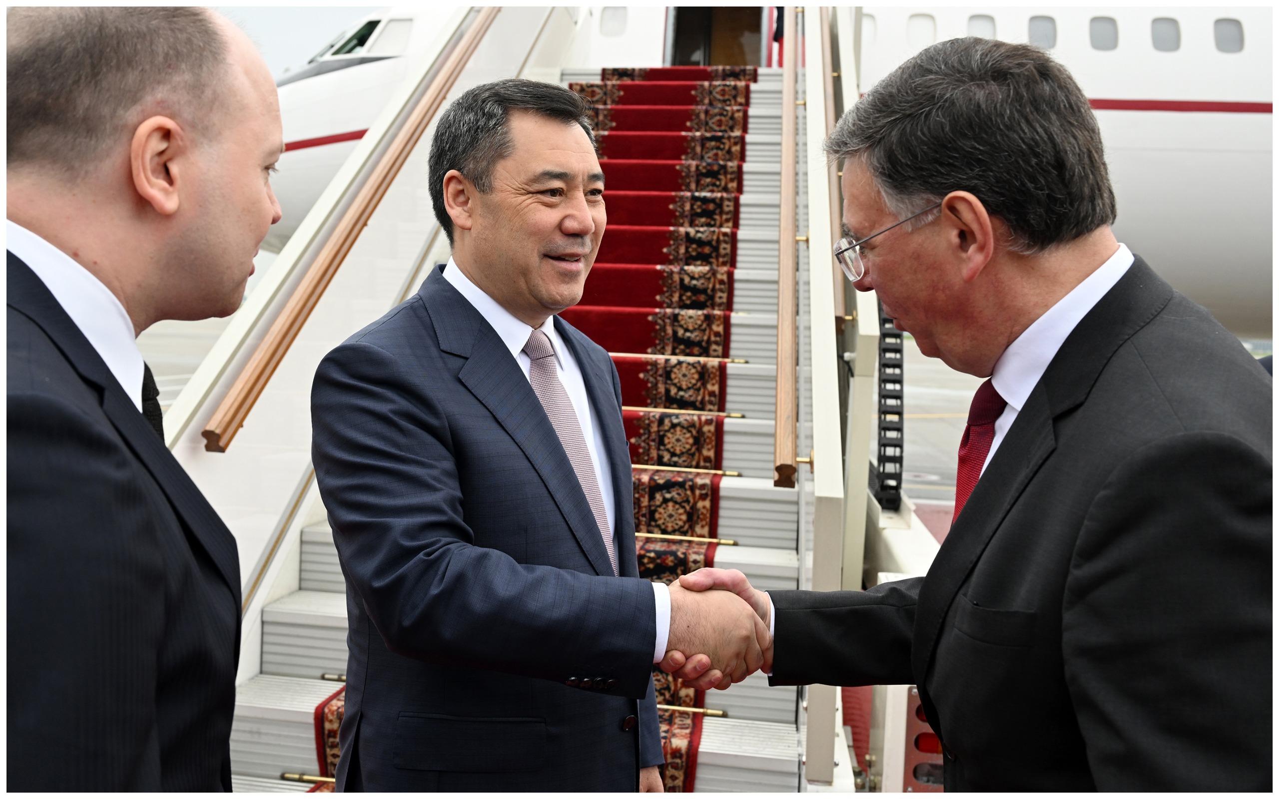 Президент Садыр Жапаровду Россия Федерациясынын тышкы иштер министринин орун басары Александр Панкин тосуп алды.
