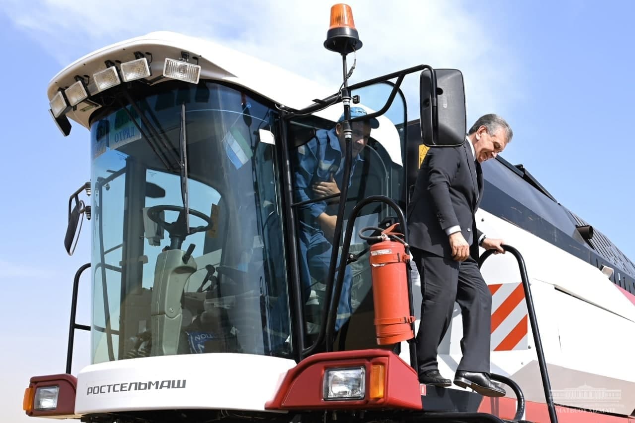 Өзбекстандын президенти Шавкат Мирзиёев Сурхандарья облусуна болгон иш сапарында комбайн айдап, дыйкандардын буудайын орууга кол кабыш кылды.