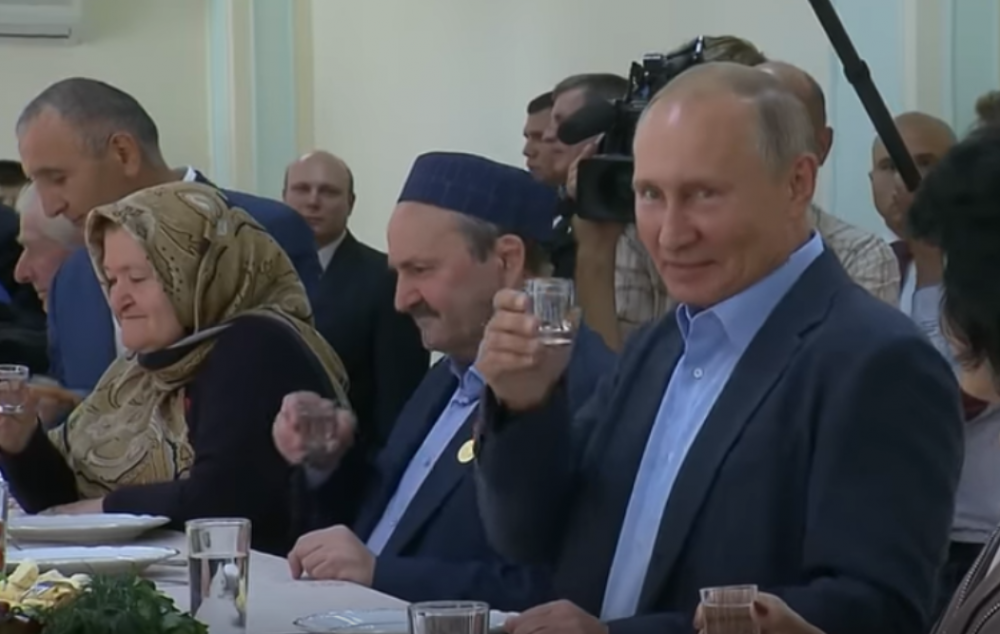 Ал окуя, 1999-жылы Путиндин Дагестанга жасаган алгачкы иш-сапарында болгону баяндалат. Анда, Басаев менен Хаттаб баштаган бандиттик топ өлкөгө чабуул жасаган мезгил болгон. Согушкерлер чабуулун чагылдыруу боюнча пресс-борбордун ошондогу жетекчиси Абдулманап Мусаев, “Биз качан жеңгенде ичебиз” деген сөзү менен Путин стаканына тийбеген боюнча столго койгонун эскерет.