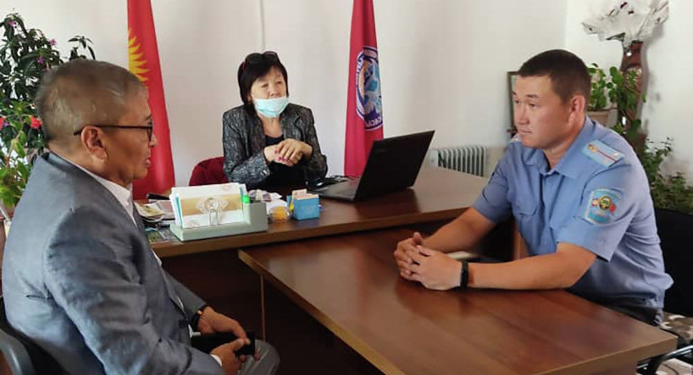 Министрликтин өкүлдөрү Кемин райондук билим берүү бөлүмүнүн башчысы Айнагүл Түлөбаева, Жалил Садыков атындагы №1 орто мектептин директору, социалдык педагог жана класс жетекчи менен сүйлөшүшкөн.