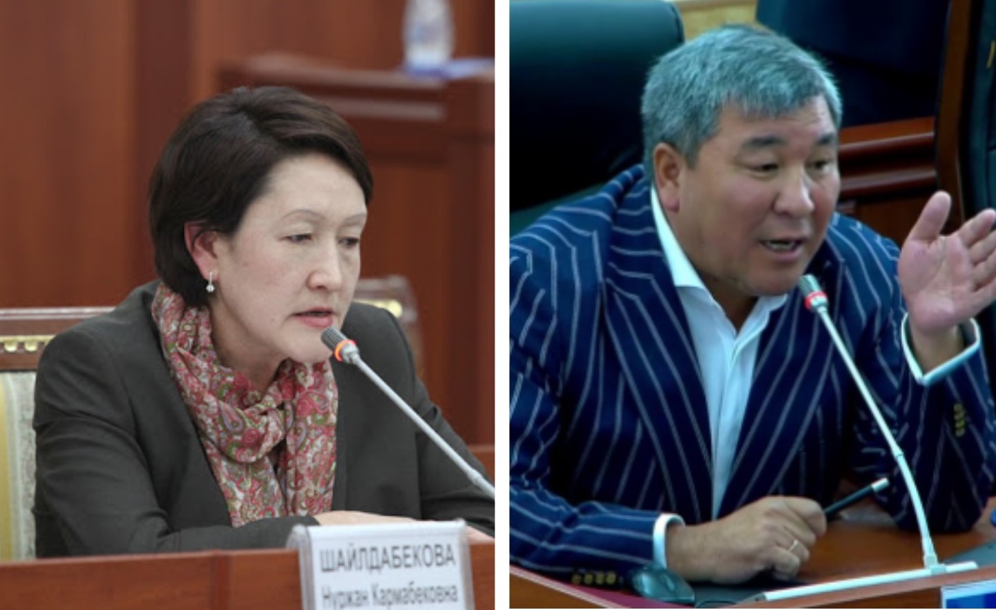 Момбеков: Шайлдавекова сиздин бул мыйзамда эч кандай тийешесин жок экен. Эч нерсе билбейт экенсиз. Мен кечээ, бүгүнкү депутаттардын суроолоруна жооп берип жатканыңызды көрүп ынындым да. Сиз бул мыйзамдарга аралашып көргөн дагы эмес экенсиз. Сиз суроолорго жооп бере албай жатасыз. Элдин талабы эске алынды деп жатасыз. Ошол кайсыл элдин талабы эске алынды?