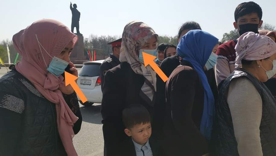 Соцтармактагы маалыматтар боюнча, Ошто бир тешиги бар маскачан адамдар, Жалал-Абадда жашыл беткапчан адамдар тобу байкалды.