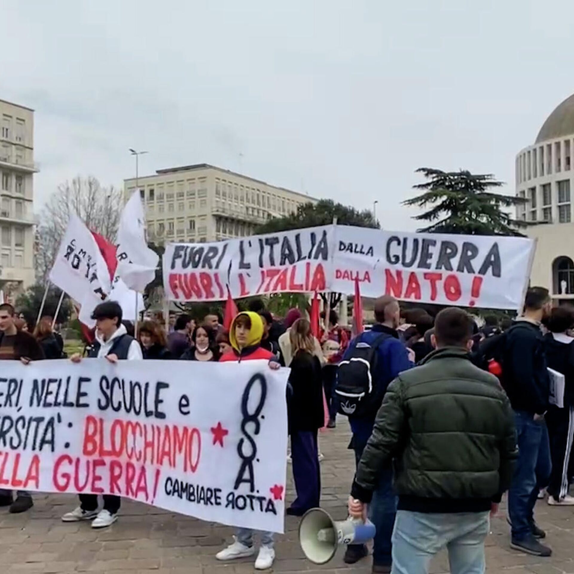 "Бул согуштун таасири бизге чеийн жетүүдө. Биз куралга каршыбыз! НАТО Украинаны каржылоогу токтотсун! Жашоо кымбат, көтөрө албай жатабыз", - дейт марштын катышуучулары.
