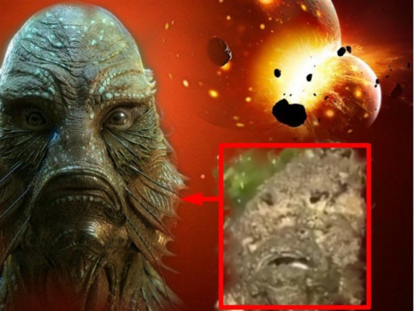 Эки көз менен оозу даана байкалып, мурдунун орду чуңкурча болгон жана айланта калканчасы бар белгисиз баш. Ал суу жээгиндеги кум-ташка аралаша жатканын көрүүгө болот. Бул табылганы орусиялык уфологдор Нибиру планетасына таандык болушу мүмкүн деп айтышууда.