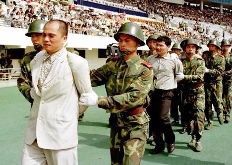 Кытай телевидениеси элди тарбиялоо максатында өлүм жазасына тартылып жаткандардын жазаны аткаруу учурун түз берүү менен ачык көргөзүп келет.