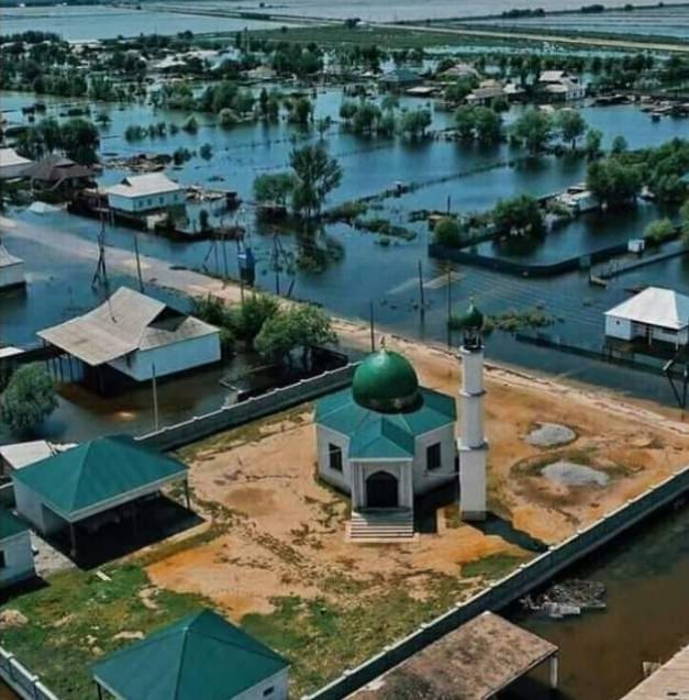 Буга чейин социалдык тармактарда Казакстандын аймагында суу каптаган жерде бир гана мечиттин аймагына суу кирбегени тууралуу сүрөттөр жана видео тарап, социалдык тармактарда кызуу талкууга алынган.