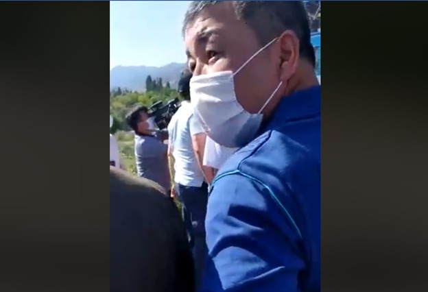 Видеотасмага көз чаптырсак, анда тургундар эл өкүлү менен Таласта жоллуккан. Суроо берем деген тургун аны урушуп, эл үчүн кызмат кылбаганын айтып, сөгүп жатканын көрүүгө болот.