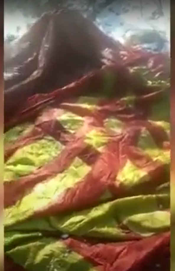 Бишкектеги сейил бактардын биринде таштандылардын арасынан мамлекеттик желек табылды. Видеодо көрүнгөндөй, мамлекеттүүлүктүн эң чоң символдорунун бири карлуу жерде жатат. Автор ушундай эле желек Бишкектеги борбордук Ала-Тоо аянтына илинип турат деп божомолдоду.