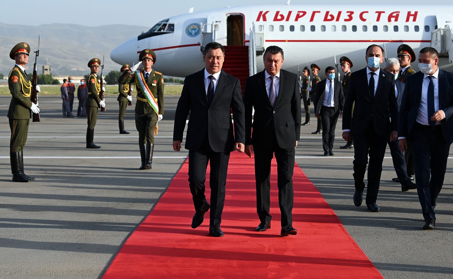 Тажикстанга расмий сапар менен барган президент Садыр Жапаровду Душанбедеги аэропорттон Тажикстандын өкмөт башчысы Кохир Расулзода тосуп алды.