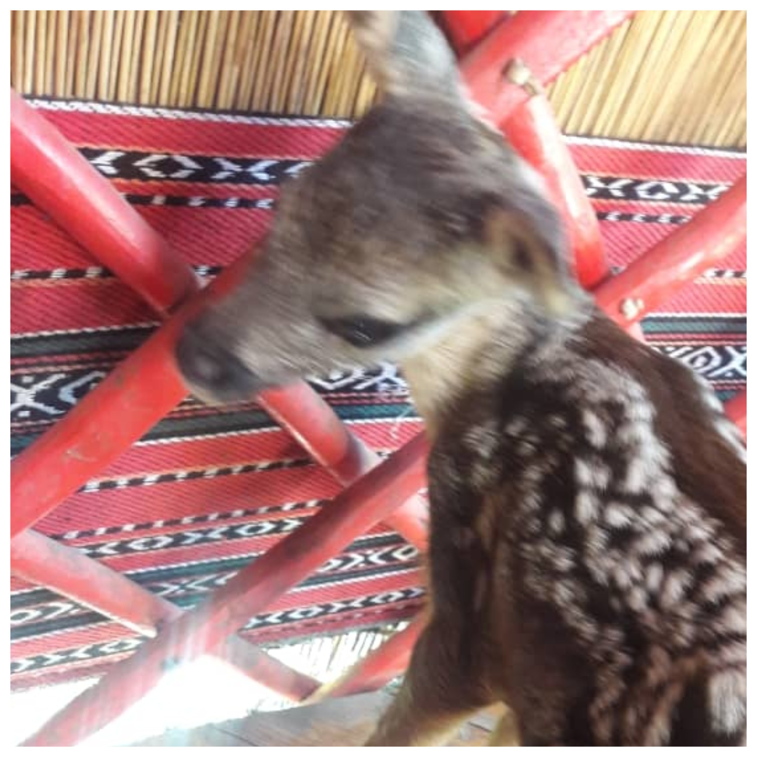 “Жаңы алып келгенде абалы начар болчу. Эки күн 10-20 граммдан эчкинин сүтүн куюп жаттык. Азыр абалы бир аз жакшы болуп калды. Сыртынан карап, туулганына 3-4 күн болгон деп айта алам. Чаарчыктын жакшы болуп, мындан ары жашап кетишине болушунча аракет кылабыз. Ал туулганда эле энесинен бөлүнүп калды. Кантип жашап кетүүнү билбегенине байланыштуу корукта калат. Бүгүн, 01-июнда Экотехинспекция келип, аны каттап кетти”,-деп “Бугу-Эне” коомдук фондунун директору Салтанат Сеитова билдирди.