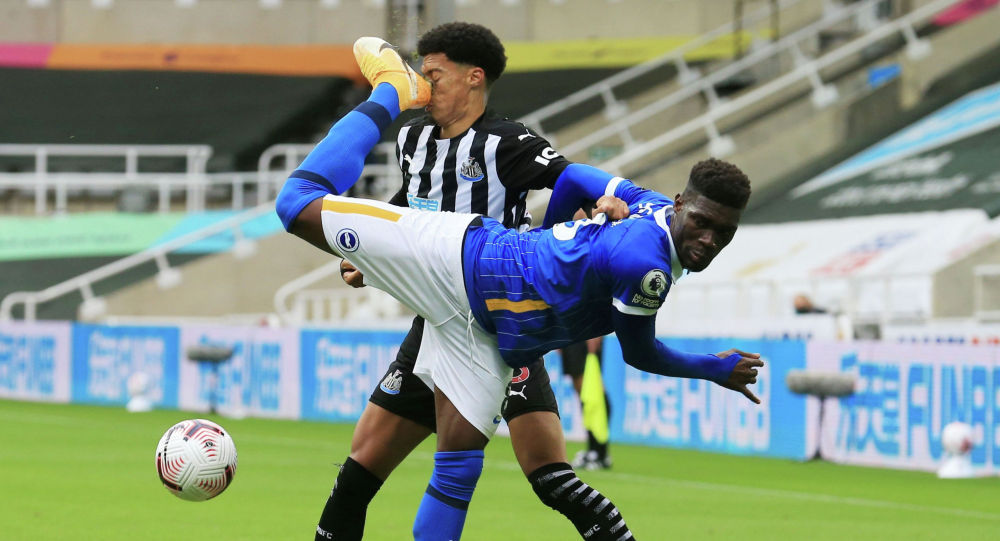 "Брайтон" клубунун оюнчусу Ив Биссума топту акробатикалык ыкмада тебем деп атаандашы Жамал Льюисти көзүнөн ажыратып коё жаздады. Футболчулардын бири-бирин тээп алган учурун The Sun жазган.