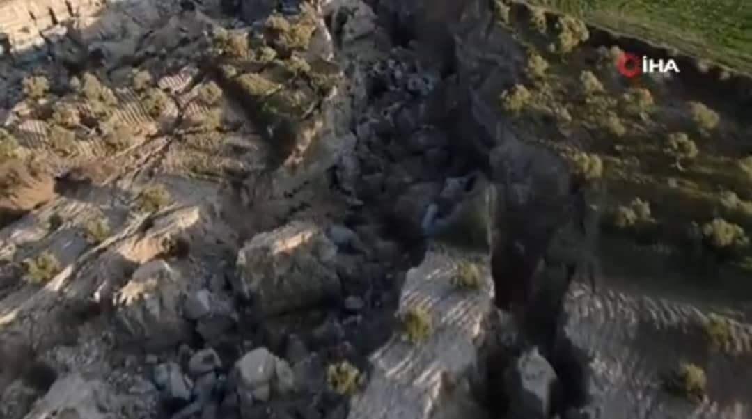 Хатайдагы жер титирөөдөн кийин тереңдиги 30 метр, туурасы 200 метрдей болгон гигант жарака пайда болгон. Видеону IHA Haber басылмасы жарыялады.