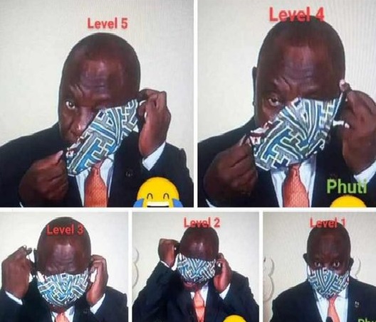Түштүк Африка Республикасынын президенти Сирил Рамафос элге кайрылуу жасап жатканда бет кап кие албай убара болду. Бул тууралуу видеотасма интернет булактарына бат эле тарап кеткен.
