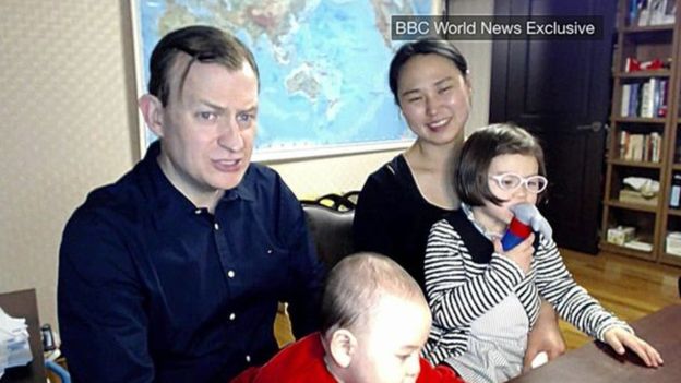 Роб Келли: Жубайымдын аты Чона Ким. Уулумдун аты Жеймс (корейче ысымы Юсок), а бул кызым Мэрион (Ена). Би-би-си менен интервью учурунда кирип келген күтүүсүз коноктор.