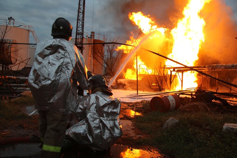 Учурда Буденновский районундагы нефтебазанын аймагында күйүүчү май куюлган цистерналар күйүп жатат. Окуя болгон жерде ӨКМдин топтору иштеп жатат.