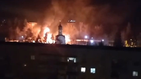 Маалым болгондой, артиллериялык окуу жай өрттөнүп жатат. Өрттүн жана салгылаштын видеосун бир катар маалымат каражаттары жарыялады.