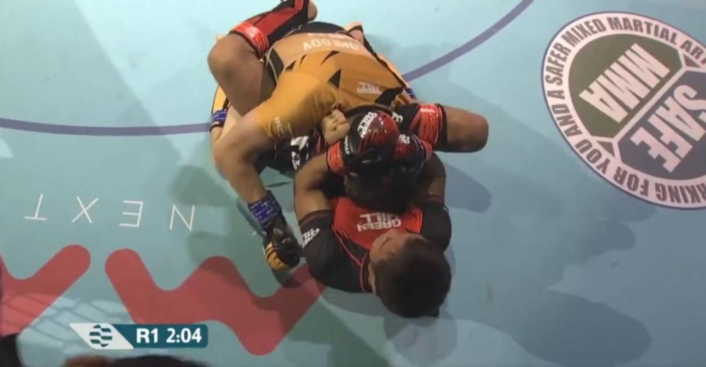 Мансур Магомедов бошоп кетүүгө жакшы эле аракет кылды, ал тургай Ерназды жерден көтөрүп, кайра жерге таштаганга да үлгүрдү. Бирок, бошоп кете алган жок. Жыйынтыгында, Магомедов эсин жоготуп, судья беттешти токтотту.