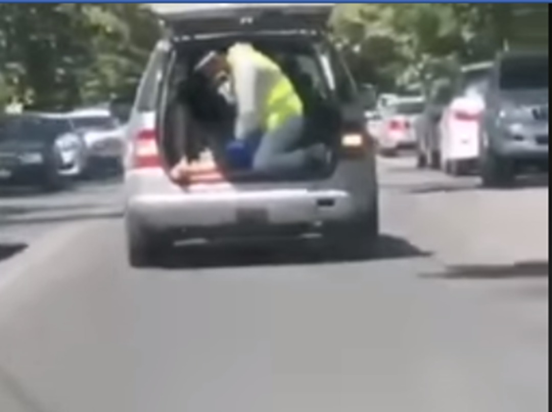 Видеотасмада жүрүп бара жаткан унаанын багажында ыктыярчы адамдын өмүрү менен күрөшүп жатканын көрүүгө болот.