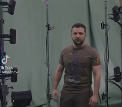 Кадрдан Зеленский жашыл фондо туруп сүйлөп жатканын көрүүгө болот.