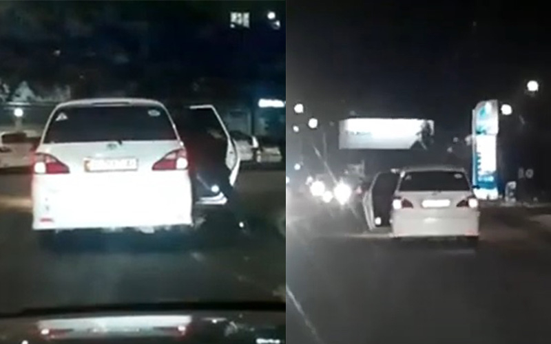 Видеодо айдоочу кызды күч менен унаага отургузганын көрүп, унаанын артынан түштү.