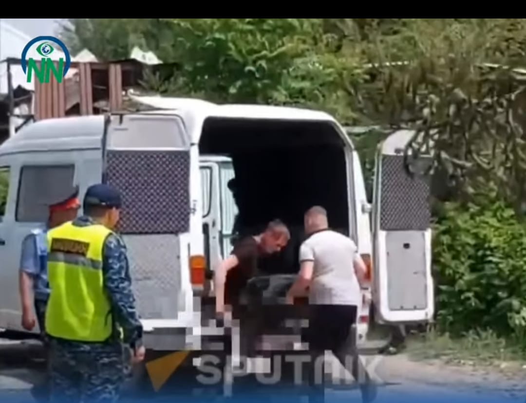 Бүгүн, 17-майда Ысык-Ата районунун Дмитриевка айлында жок кылынган террористтин сөөгүн "Жүк-200" деген жазуусу бар кичи автобуска салып алып кетишти