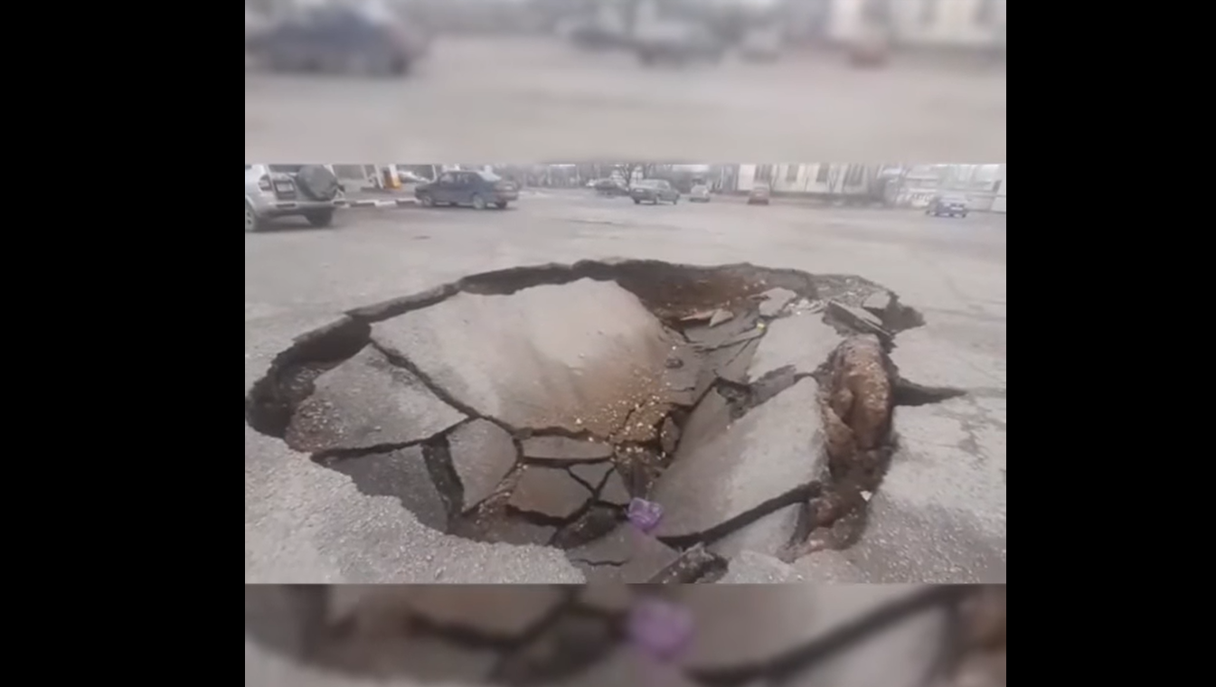 Интернет тармагында жолдун так ортосунда жердин оюугу пайда болгон видео тарады.