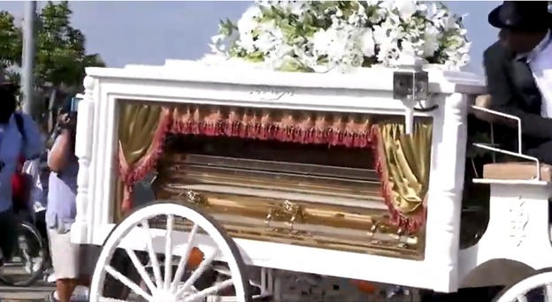 Ошентип, дүйнө жүзү полициянын колунан каза тапкан афроамерикалыктын сөөгү жерге берилип жатканын көрө алды. Флойд алтын боёк менен боёлгон коло табытка коюлду. Табыт ак боз аттын тобу менен жеткирилген. Хьюстон шаарынын мэри билдиргендей, азыр 9-июнь календарга Жорж Флойд күнү деп жазылат.