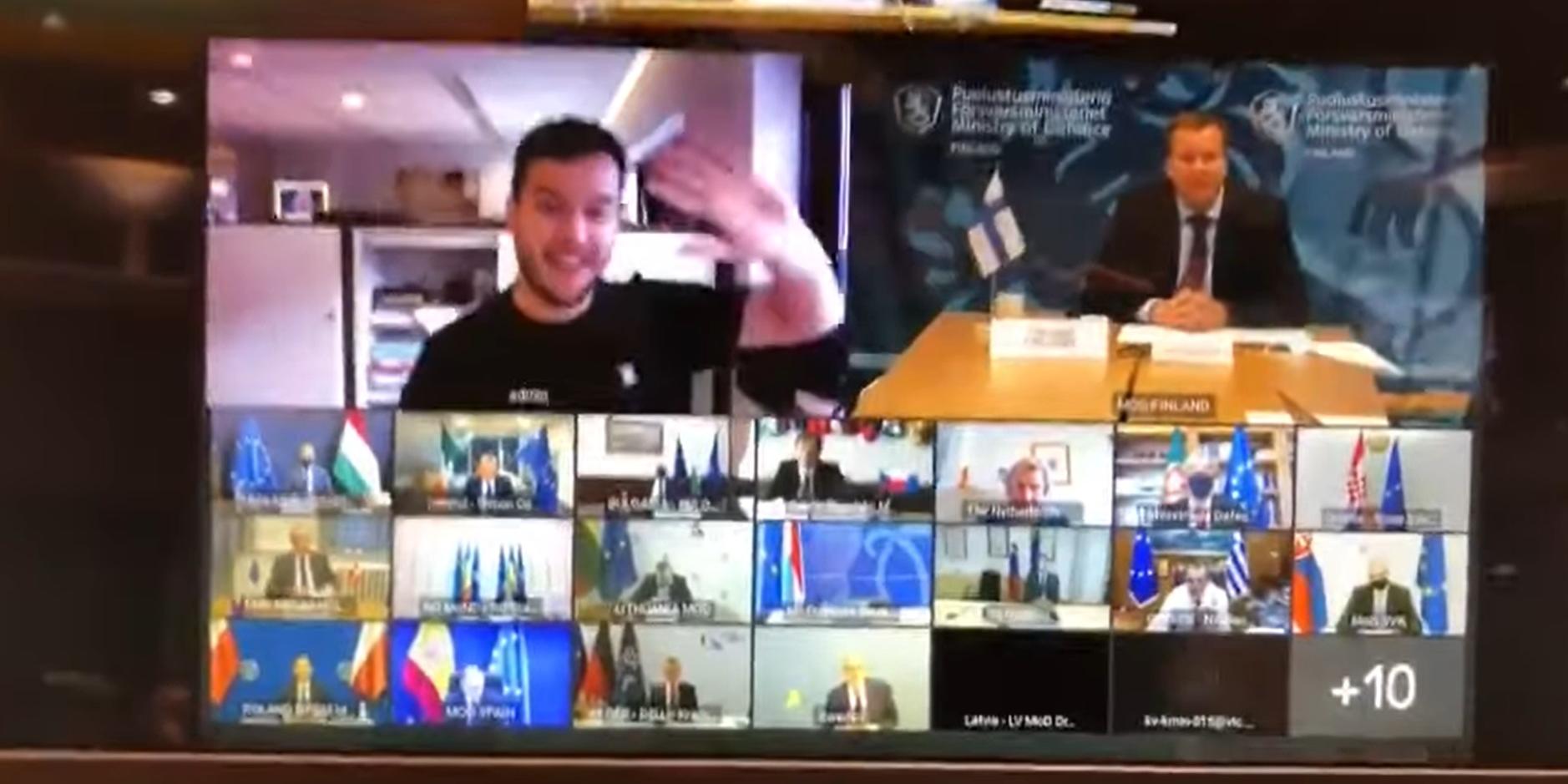 Голландиялык журналист Даниэль Верлаан Европа Биримдигинин коргоо министрлеринин жабык видео конференциясын үзгүлтүккө учуратты. Ал онлайн жолугушууга кирип, ал тургай европалык саясатчылар менен баарлашууга жетишкен.