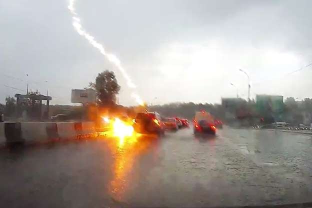 Маалыматтарга караганда, бул окуя Орусиянын Новосибирск шаарынан Бердск шаарына бараткан трассада болгон. Машинага чагылгандын тийгени анын артында бараткан унаанын видеорегистраторуна тартылып калган.