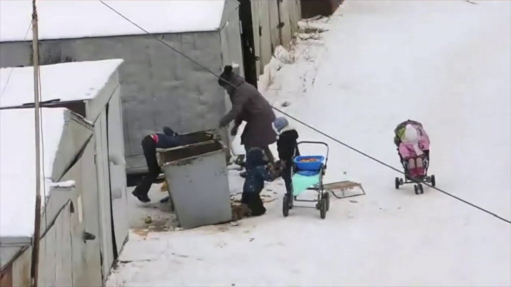 Мына ушул видеону тартып алып, интернетке жүктөгөн адам видеонун астына: “Якутск шаарындагы көп балалуу үй-бүлө, тамак-аш издешүүдө. Орусиянын алмаздуу борбору! Башкысы Африка элине жардам бергиле, Сирияны калыбына келтиргиле. А биздикилер эч нерсе эмес. Биздин аялдар чыдамкай, төрөгөн соң өздөрү кантип болсо дагы бакканга милдеттүү да”, - деп жазган.