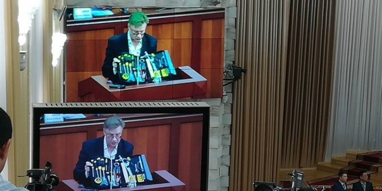 Бишкек ЖЭБдин директору Андрей Воропаев парламентте 600 доллардык кычкачты көргүсү келгендерге бир чемодан инструменттерди алып чыгып, аны менен кошо бир түрмөк лентаны көрсөтүп, ушунун баары 320 доллар болгон деп айткан.