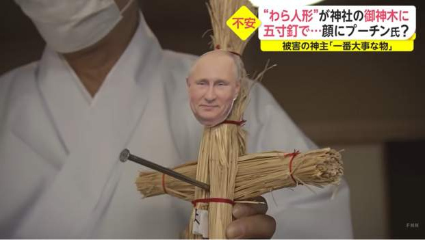 Токионун жанындагы синтоизм храмдарынын аймагында Владимир Путиндин сүрөтү чапталып, даракка мыкталган саман куурчактар табылууда. Кимдир бирөө байыркы салт боюнча орус президентине наалат айтууга аракет кылып жатканын Би-Би-Синин орус кызматы билдирди.