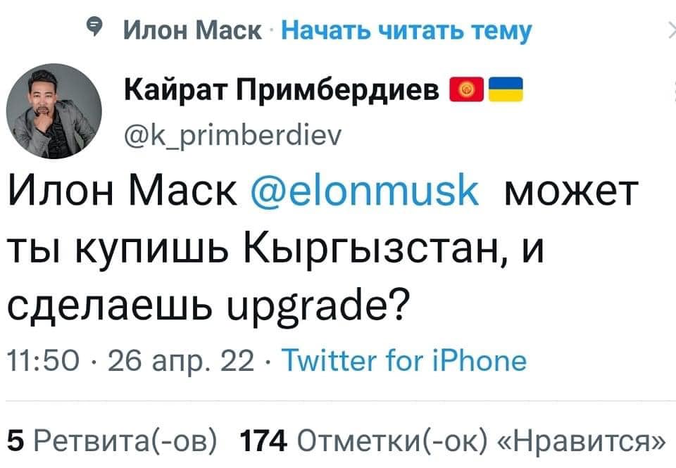 Маданият министри чукул арада чара көрсүн. Урмат Үсенов жеткирип коет деп ишенебиз», - деп жазган Орунбеков.