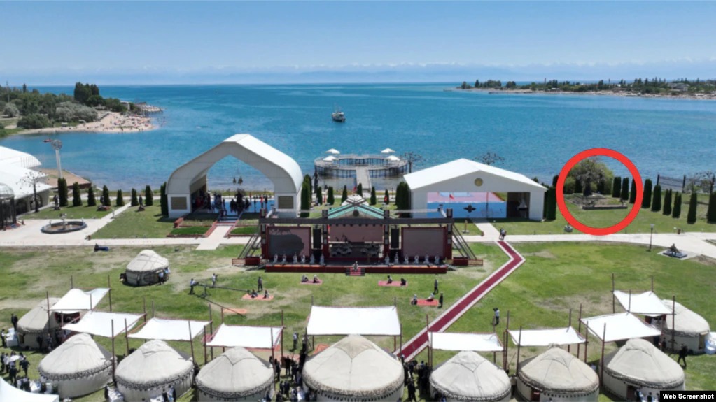 Эстелик көлдөн алыс эмес жерде – арканын оң тарабында орнотулган. Басылма эстеликти болжол менен бир жыл мурун – 2020-жылдын ортосунан 2021-жылдын ортосуна чейин алып салышканын жазды. Себеби ошол кезде эс алгандардын видеосунда эстелик көрүнгөн эмес.