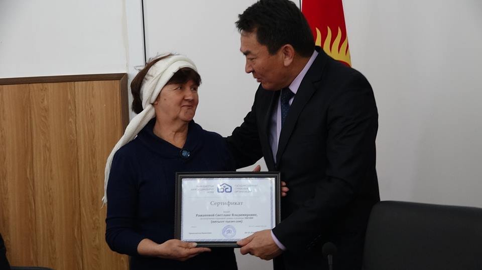 2018-жылдын 18-декабрында Ысык-Көл райондук мамлекеттик администрациясынын жыйындар залында Ысык-Көлдө 1-декабрда катуу шамалдан турак-жайы жабыркагандар эми үйүн аз убакыттын ичинде кайра калыбына келтире алат. Мамлекеттик камсыздандыруу уюму үйүн өз убагында камсыздандырып алган 19 үй ээсине тиешелүү каражаттарды тапшырды. Алардын алды 500 миңден алса, калганы муктаждыкка жараша жарандык коргонуу комиссиясынын чечиминин негизинде алышат.