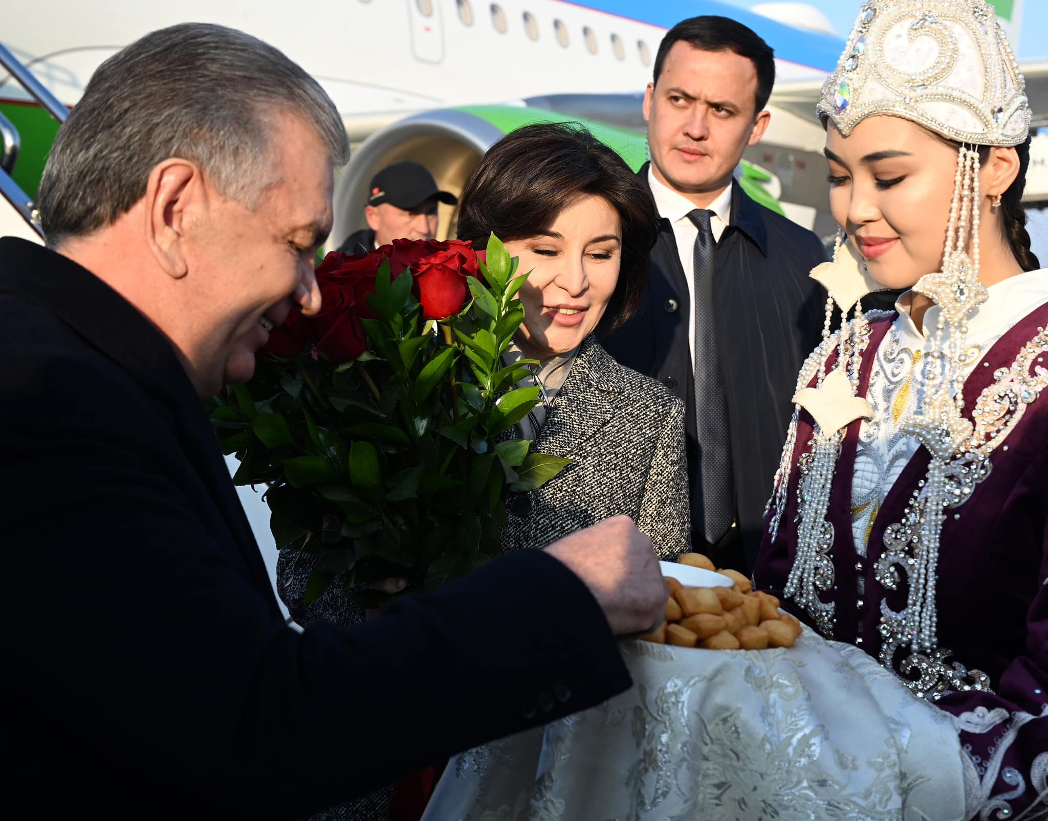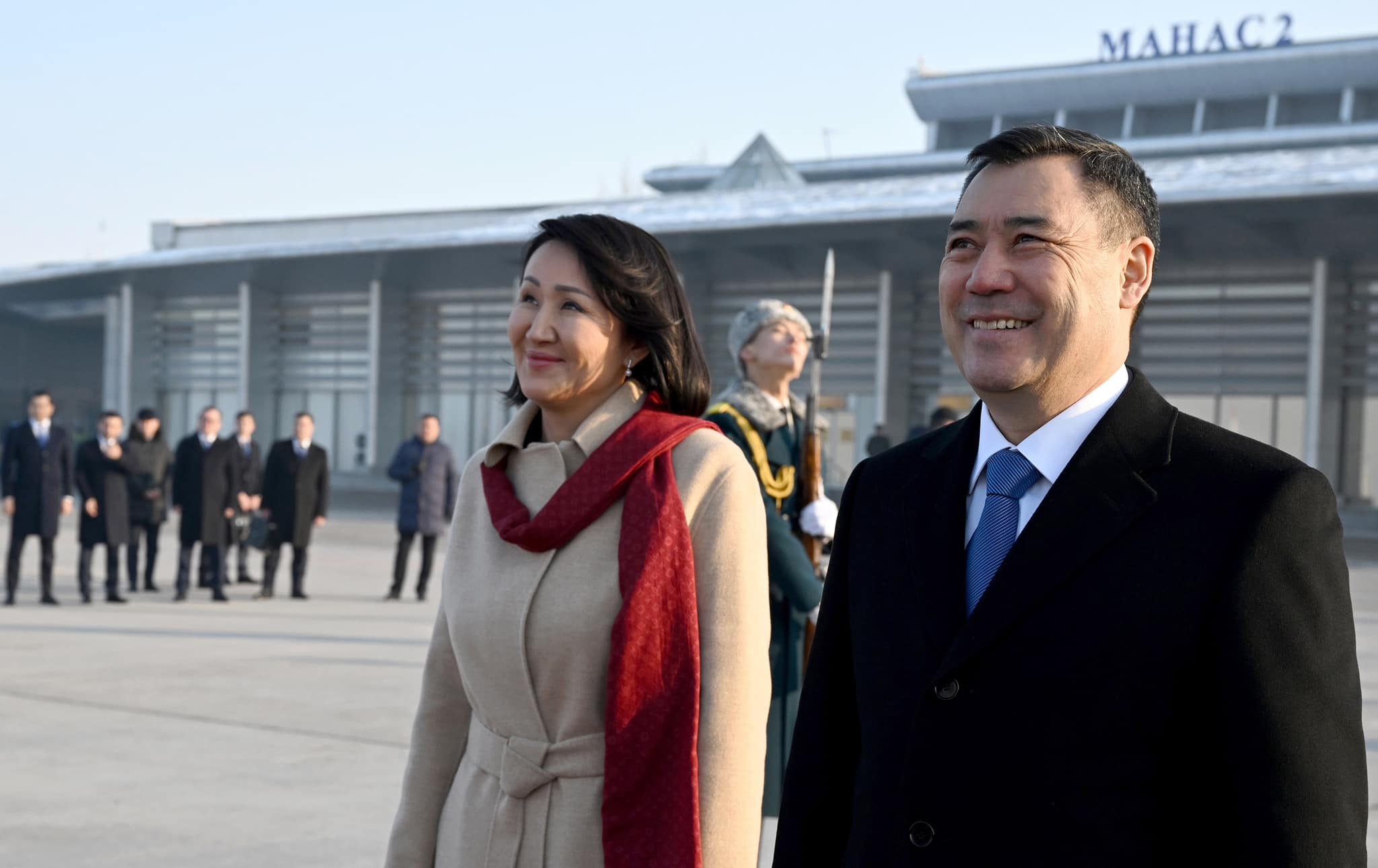 “Манас” эл аралык аэропортунда Өзбекстандын лидерин Кыргыз Республикасынын Президенти Садыр Жапаров тосуп алды.