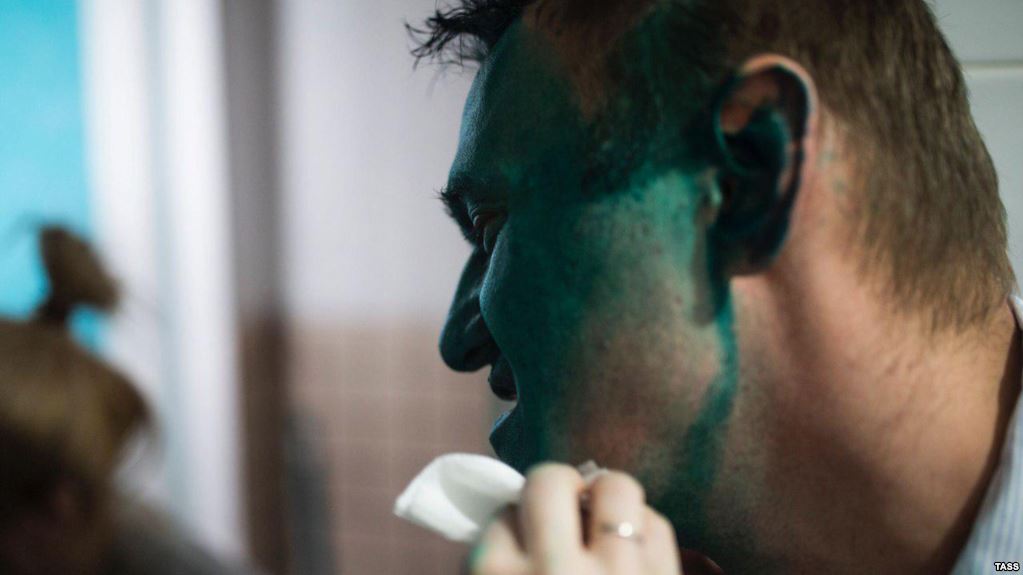 Эскерте кетсек, апрель айынын соңунда белгисиз адамдар Навальныйдын бетине зеленка чачып кетишип, натыйжада анын оң көзү химиялык күйүк алган. Бул окуядан көп өтпөй Навальныйга чет өлкөгө чыгууга паспорт берилген. Ал беш жылдан бери мындай укукка ээ боло албай келген.